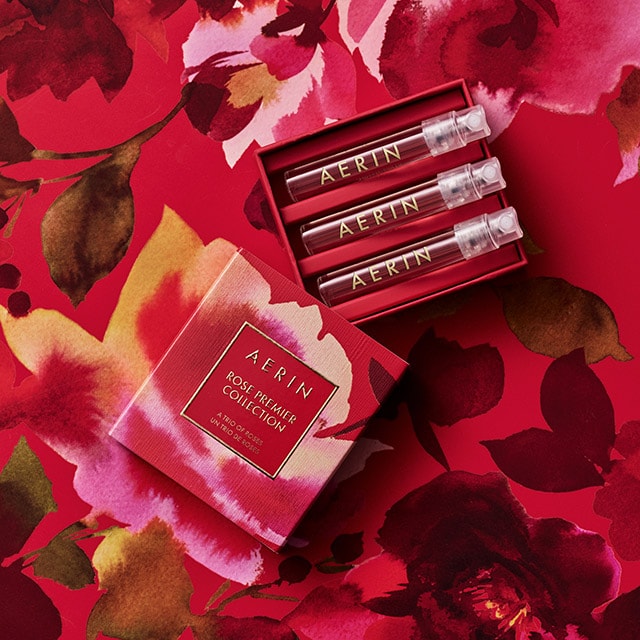 3-vial set including a trio of fragrances from AERIN's Rose Premier Collection.